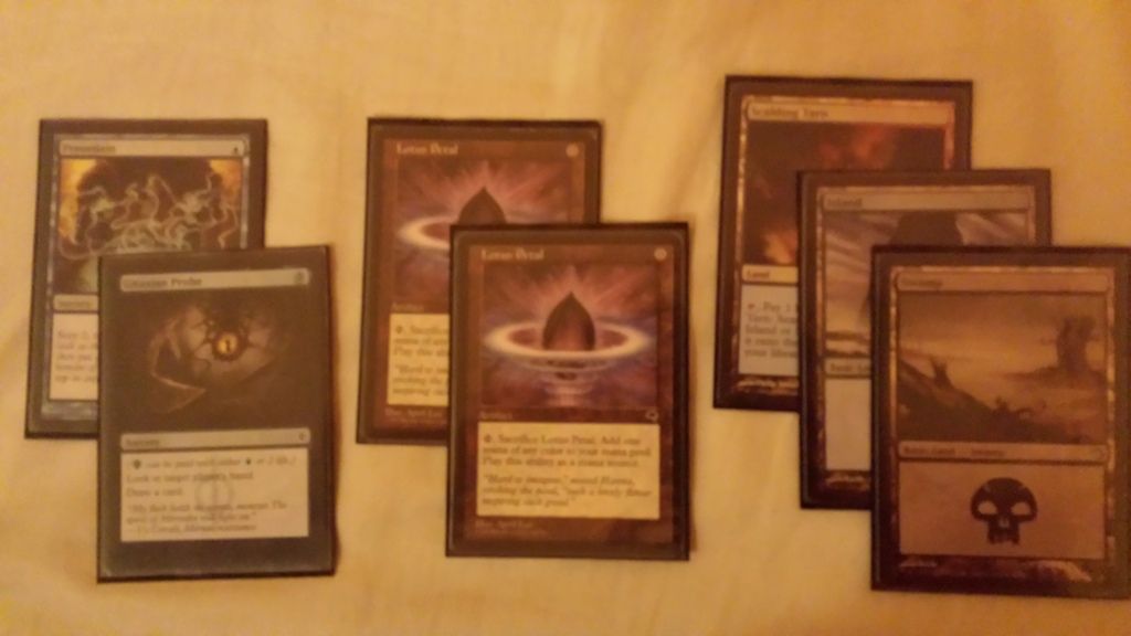 One finals, one semi-finals, but definately both winnable matchups (although the blade player is my friend Luke and he doesn't like combo :P, g3 he started with t1 thoughtseize on the draw and then revealed Meddling Mage, Counterspell, Spell Pierce, Z Persecution, Flusterstorm, Force of Will, Land to my probe. I'm around 50/50 against him with deathblade). And yeah, I'll be tiring myself out on Friday ;(, sadly the infi trial packages are already gone.