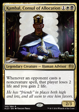 Yeah the existence of this card definitely pushes the black splash. Unfortunately not tutorable...and yet another 3 drop that only hoses spell decks and not creature decks (similar to Prelate), but the power level is very high, and it's a legend.
