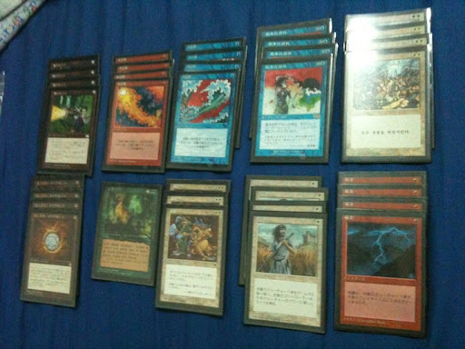 Too bad most of my collection is in toploaders or screwdowns. I could post some really nice decks. For example, my geddon stax deck (lacking about 4 of the korean cards now) if I chose to put it together would be multiples of the four thousand dollar solution. Maybe some time soon.