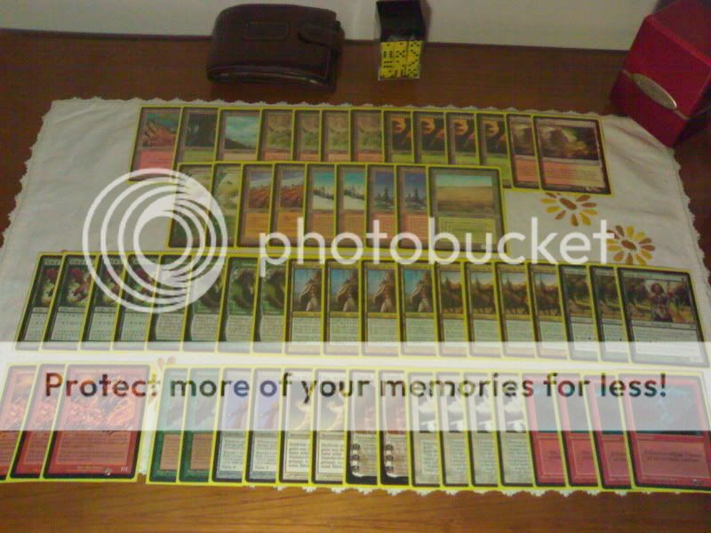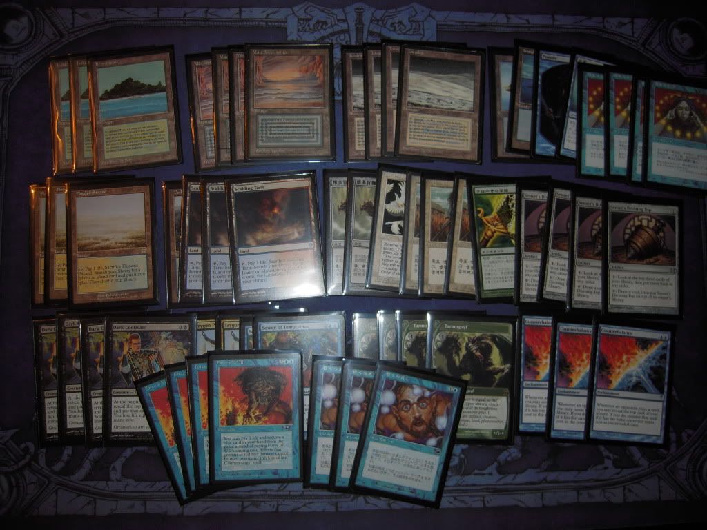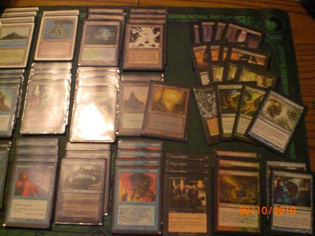 My UBGR Landstill deck. My idea of pimp is the nicest art I can find in the language I prefer, and this usually ends up being blackborder English copy with the nicest art. Duals are Revised since I don't play with my Beta/Alpha duals, so don't rag on me about them. Highlights include 10 duals, Decree, Jaces, massive gravehate for Vengevine :cool:, Mirage basics (I like these a ton), and running Firespout in the main. Deck's fun to play, and decent to look at.