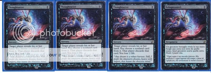 Also i have to admit that the foil Thoughtseize and the three non foil Tutors are not mine but i thought posting the complete deck makes it more fun to watch!