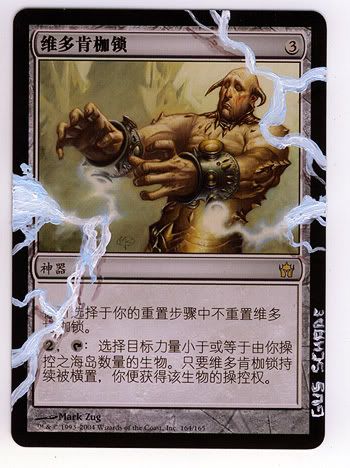 I love everyone of the alterations, yawg, except the Shackles. I think for the lightning, personally I would find it nicer if you went over the printed lightning bolts on the printed art on the card as well, cos your altered lightning looks strikingly different from the printed ones...
