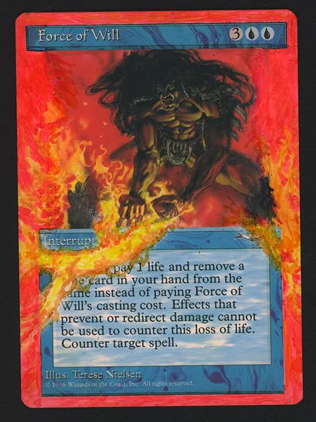 Altered Magic the Gathering "Force of Will" Featuring Mark Tedin's "Necropotence"