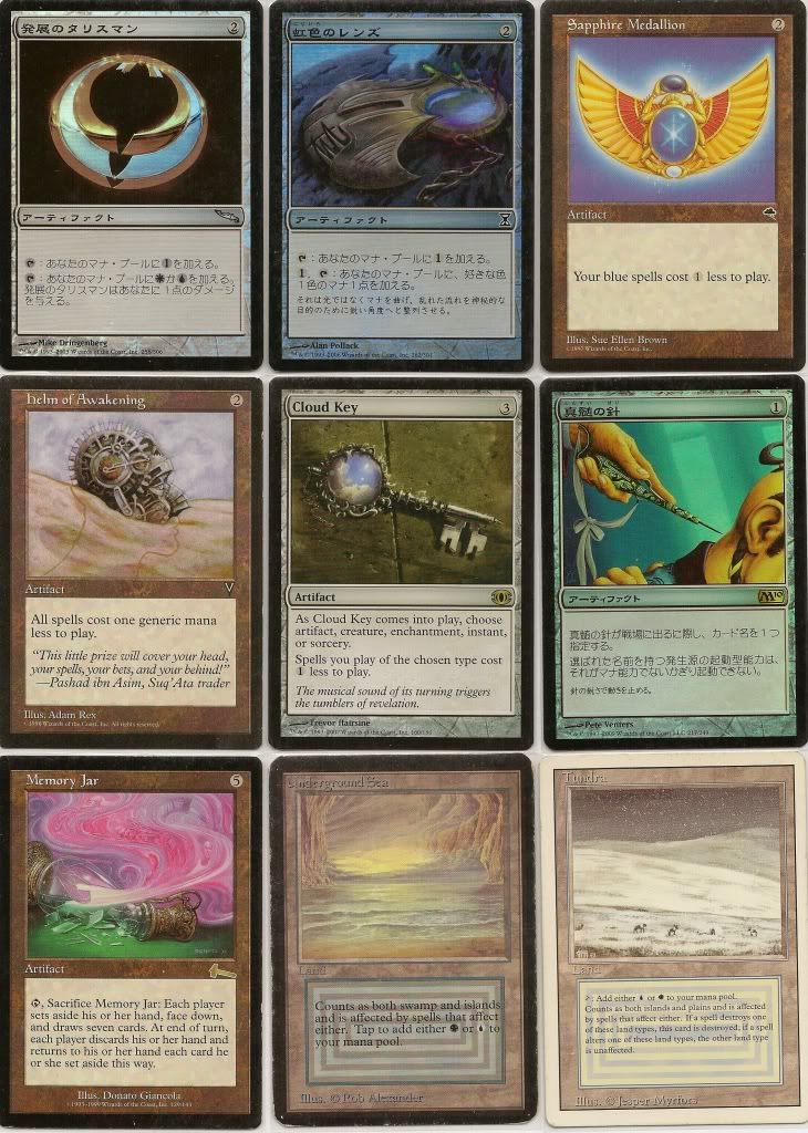 I'm kind of torn on which version of Ponder to use. From a rarity and price standpoint, the Extended Art seems to be more rare and valuable than the Japanese Ponder. I have been tempted on several occasions to pick up a Japanese set of M10 Ponder, but I haven't seen one readily available to trade for, and of my list of things to spend $ on or trade for, it ranks fairly low. Plus, the Extended art is cool and besides the lands, its the only card in the deck that I can get in an extended art version.