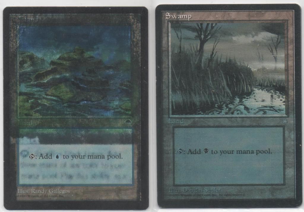 The island is one of the most screwed up basics I've seen, and I don't have/can't find a swamp that can live with it and which is legal for play. The swamp is likely a makeshift, the island is a treasure. I'll show you guys some other potential combos with time.