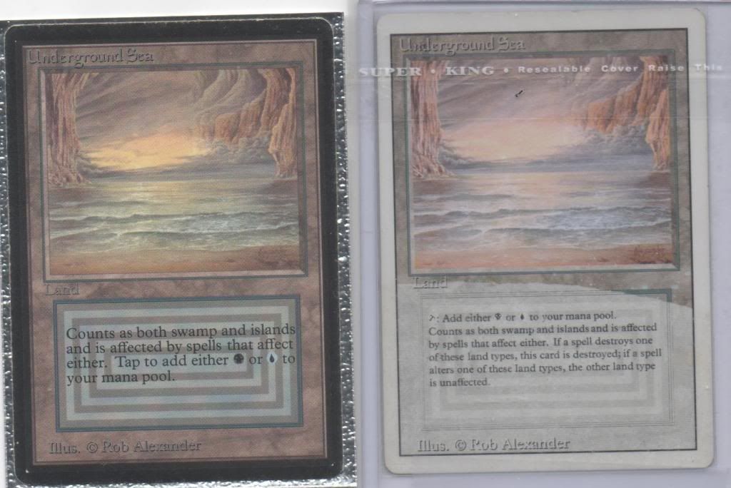 Intention is to go all summer on duals (obviously not there yet), and I probably chose the worst bb sea I have for the pic. The albino sea is a favourite of mine, so I intend to include it alongside the summer duals. Besides, it's currently the most expensive card in the deck (and the only white bordered one). Is it better to go with two beta seas to match borders, or let the albino sea stick out like a sore thumb that is worth more than certain decks?