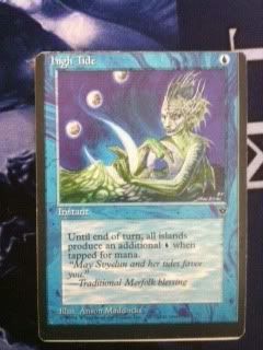 So maybe someone can help me out here, because I'm quite stumped. I recently got a miscut High Tide and part of the bottom border is white. It wasn't painted or anything like that, and is naturally part of the card. The card itself is still the same size and such as any other card, not like it's extra cardboard or something. Here are the pics: