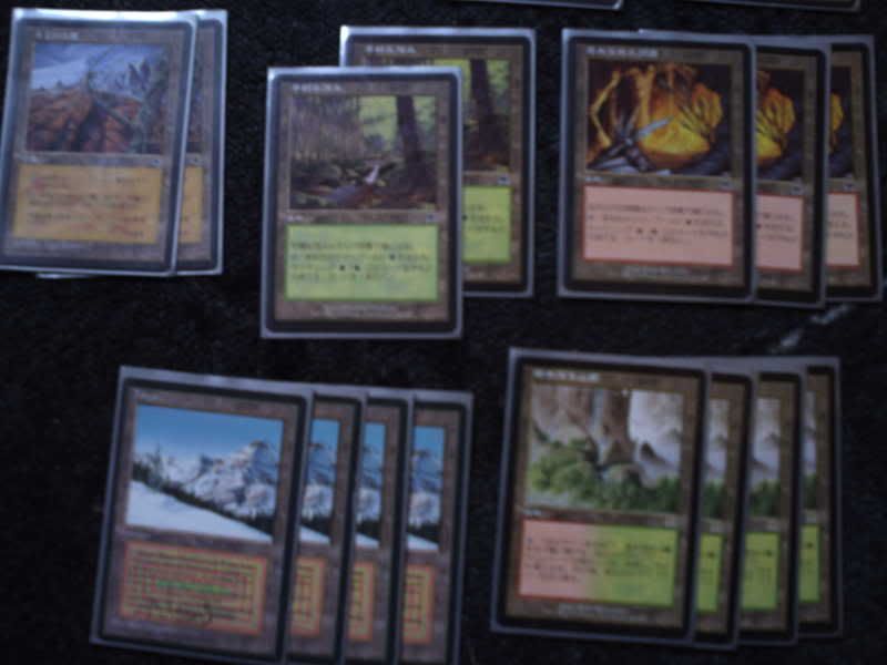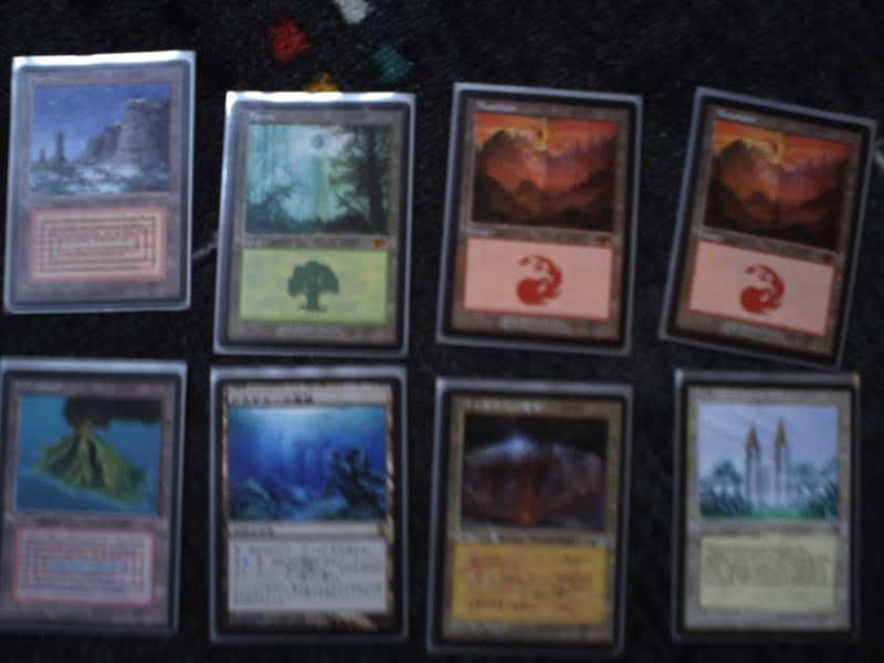 Some lands from my 4c landstill. I'm still waiting on a foil vedalken shackles and foil loam and I'll post the whole thing. Sorry about the crappy picture quality.