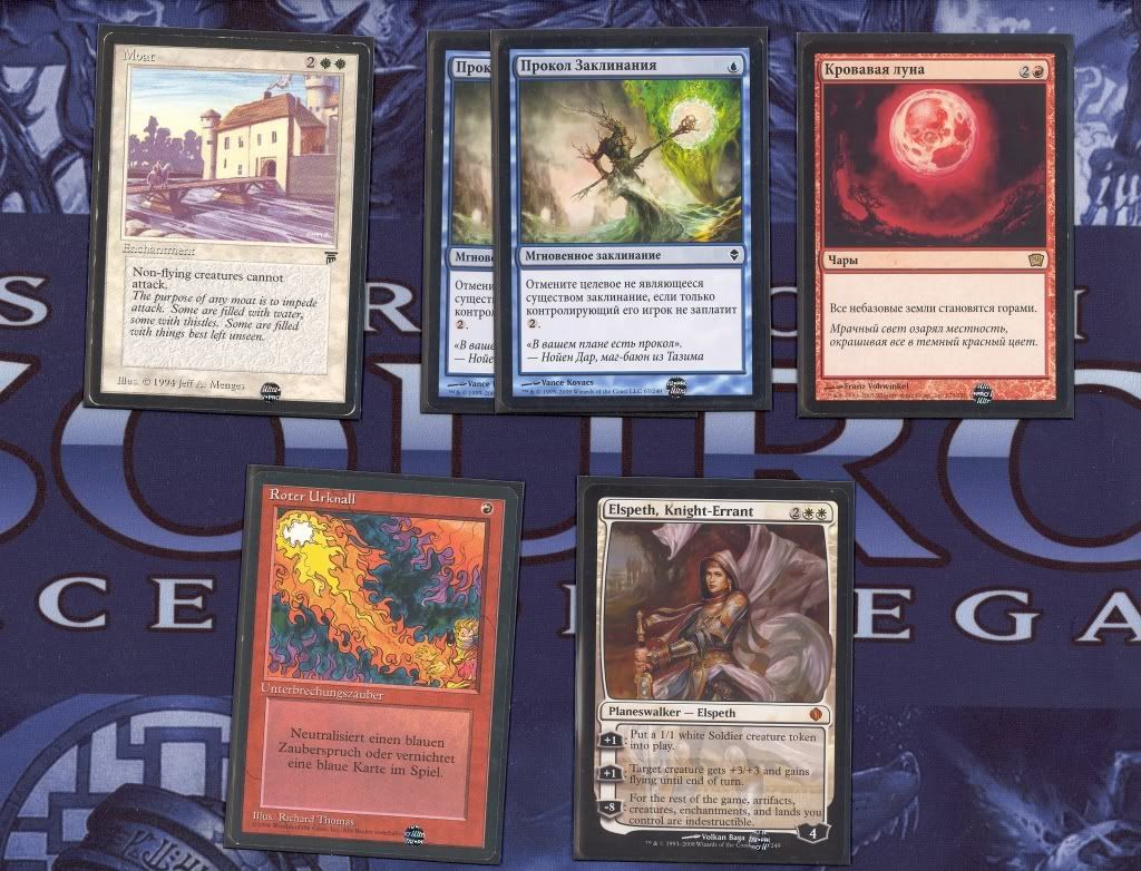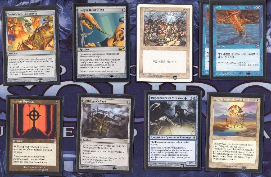 Russian Pierces, Blood Moon, Cage (incoming), Crypt, Elspeth (incoming), Pithing Needle, Metamorph.