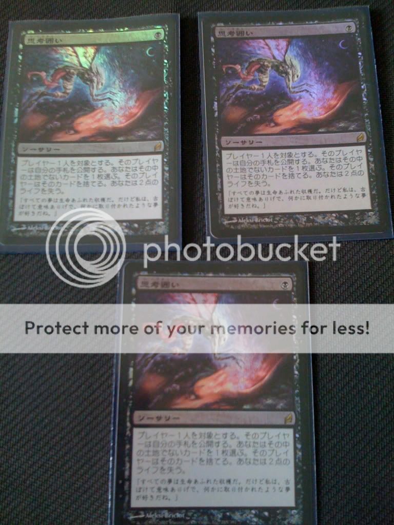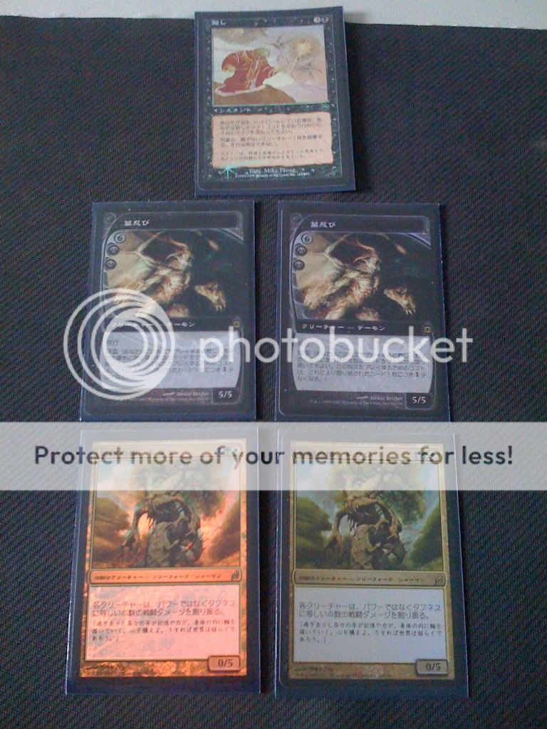 LOL - The other one is on it's way from Singapore - I wish it would hurry up! I used to have signed (slightly altered) portal wraths and I sold them to a friend of mine so I needed replacements. I bought 3 beat wraths from a vendor at the Conflux Pre-Release for $5 dollars a piece -LOL I told him .. I want the crappiest wraths that you got.. basically proxy wraths until I get my foil jap 7th. LOL