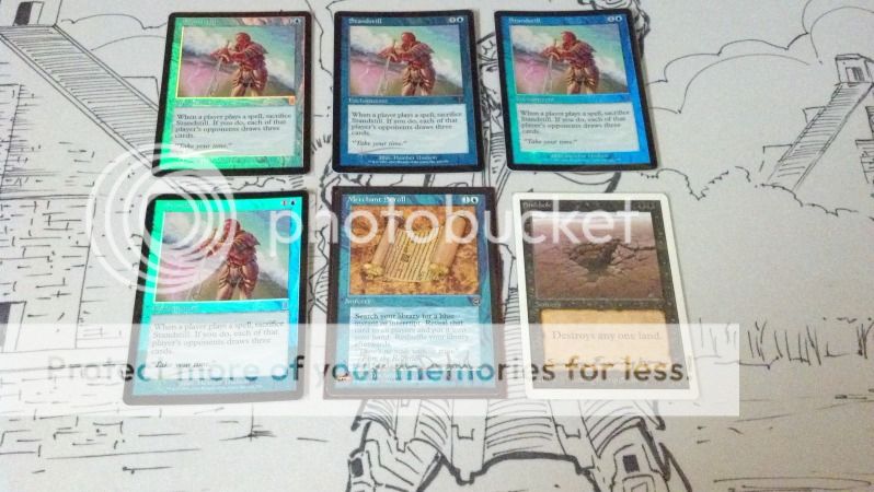 Finally pieced together a set of foil Standstills, signed minty Unlimited Sinkhole, no one will ever guess what I had to pay for it, and lastly a signed minty Merchant Scroll which was very hard to find.:laugh: