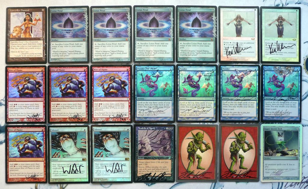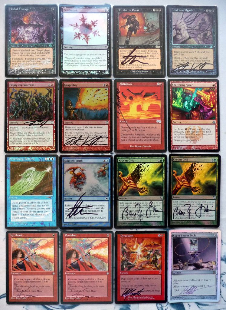 This is a work in progress for me, downsizing my collection while foiling my current pet deck, still need some FBB's, judge nobles, FNM StoP, a few upgrades, hope to finish this day 1 in Vegas, can't decide if I want to downgrade the JPN foil crop rotation into English, or what, but still a lot of progress to make.