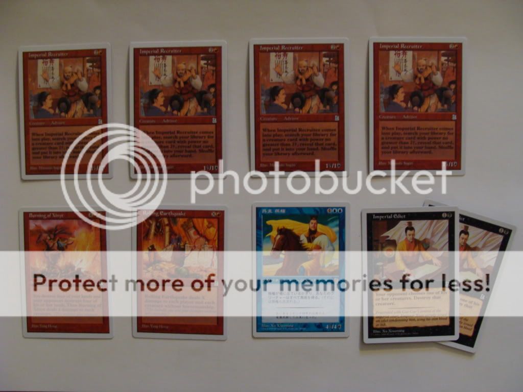 I drool at the Imperial Recruiters though. I don't have a one and I need one card for a set of Three Kingdoms. Yup, stupid recruiter just had to be the last card to find. Bad thing is I sold one a long time ago before I ever tried to make a set. I got $90 for it, but now it' double that it seems.