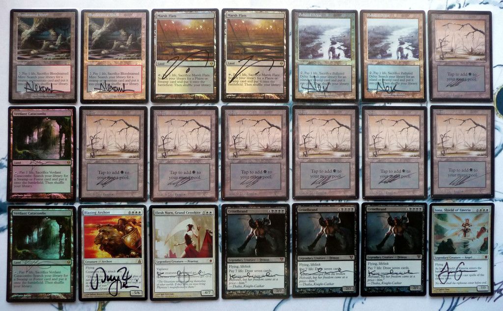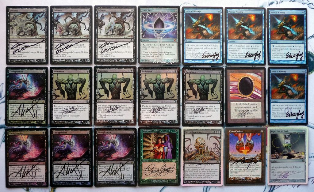 As an added bonus, here's my second project. Again, sorry for the blurry sleeves, and extra apologies for those silly black and white proxies. Everything except for the Karakas and 2 Mox Diamonds is in the mail so I should have the maindeck finished by the summer. The SB is a work in progress and will likely not be finished for a while. I won't go as crazy on the spares for this deck like with Miracles, however.