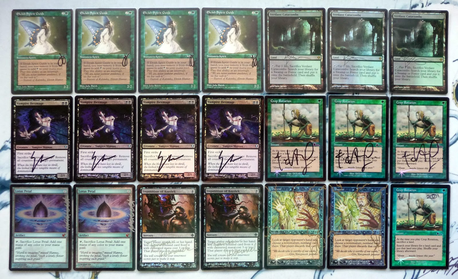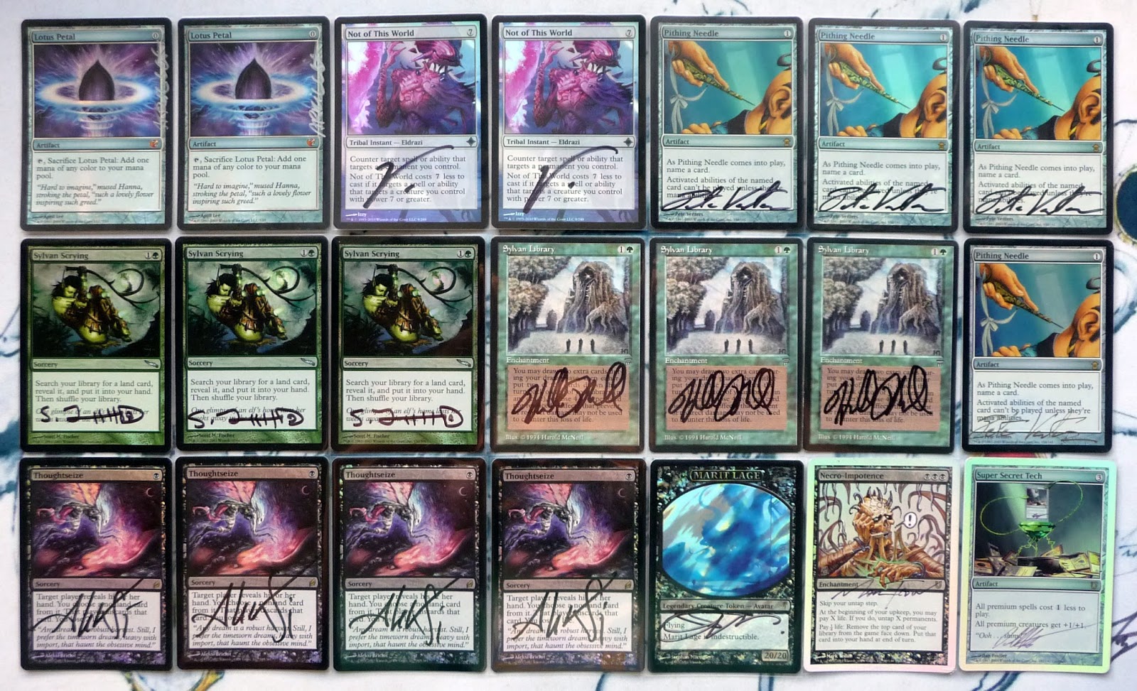 Picked up the last dual I needed today. I'd say I'm done except the thoughtseize's are Theros but that's a recent inclusion to my main deck and I honestly don't mind not having Lorwyn ones so I don't plan on picking them up any time soon. (I could've just put some sylvan libraries and stuff in their place to make it look nicer though =p)