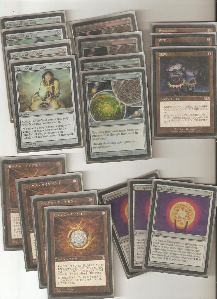 For some reason, the knights and the Magus' don't look foil, but they sure are! I still have WB Mishra's factories, so I didnt feel like uploadin them :( and I am still missing one JAP Smokestacks. Help me out!